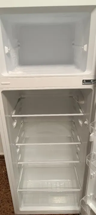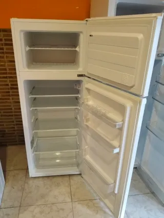 Nevera y congelador Edesa en color blanco. - Diseño de dos puertas. - Compartimento congelador superior. Medidas 145x55. Podibilidad de transporte.