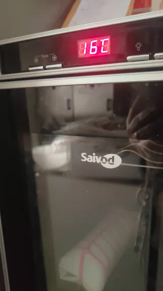 Vinoteca de la marca Saivod con pantalla digital. - Diseño moderno en color negro y plateado. - Puerta de cristal. - Temperatura ajustable.