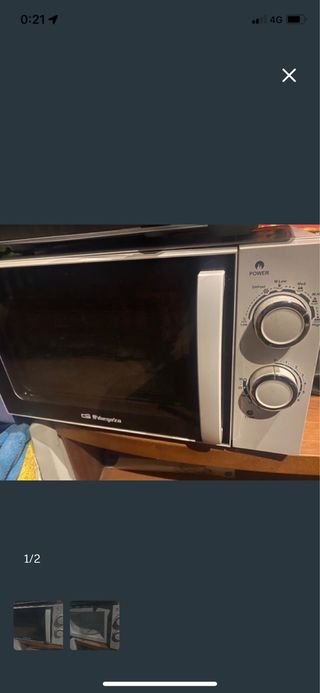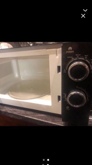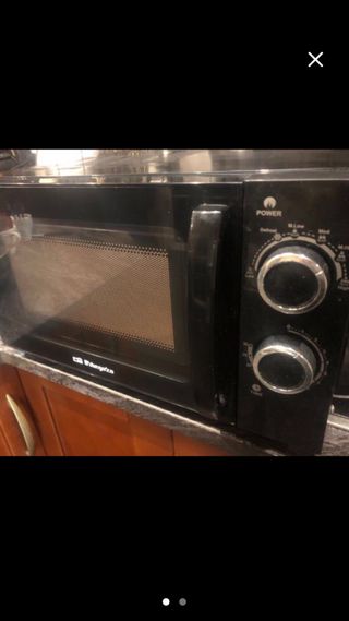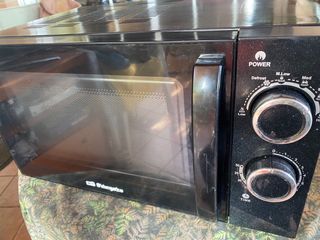 Microondas Orbegozo en buen estado. - Diseño compacto y funcional. - Panel de control con mandos giratorios. - Puerta con tirador integrado.