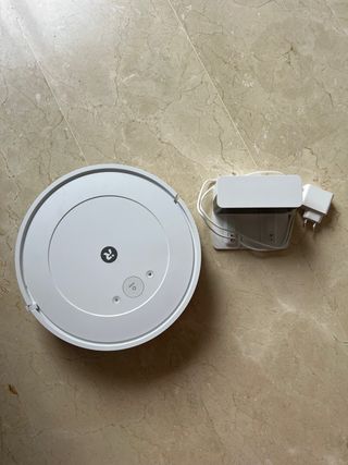 Robot aspirador y friegasuelos Roomba Combo Essential en color blanco. Diseñado para una limpieza eficiente. - Diseño redondo y compacto. - Base de carga incluida. - Adaptador de corriente europeo.