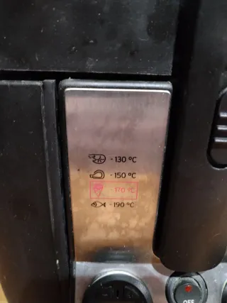 Fregidora eléctrica SilverCrest amb control de temperatura. - Indicadors de temperatura: 130°C, 150°C, 190°C. - Botó d'obertura automàtica. Mànec per pujar i baixar la cistella amb posicions estables i de seguretat - Indicador lluminós de READY. Ha tingut molt poc ús És a Barcelona, al barri gòtic.
