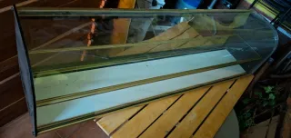 Vitrina expositora de cristal con dos alturas. - Medidas: 120 cm de largo, 28cm ancho, 33cm altura