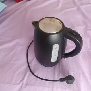 Hervidor de agua eléctrico de color negro, con una capacidad máxima de 1.7 litros. - Indicador de nivel de agua. - Tapa con cierre de seguridad. - Base giratoria de 360 grados.funciona muy bien