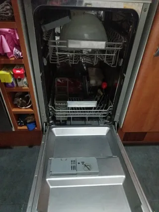 Lavavajillas Whirlpool de color blanco, en buen estado. - Capacidad para 6 cubiertos. - Varios programas de lavado. - Control digital. Tiene el embellecedor superior agrietado Se vende por reforma en al cocina y se a comprado integrada