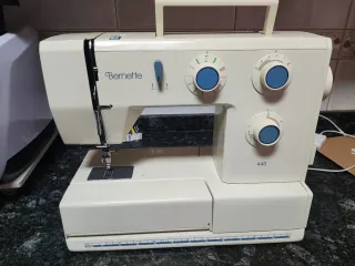 Leer con atención, la máquina funciona y ocasiones y en otras no. Máquina de coser Bernette modelo 440. - Color blanco marfil. - Diseño clásico. - Asa superior para transporte.