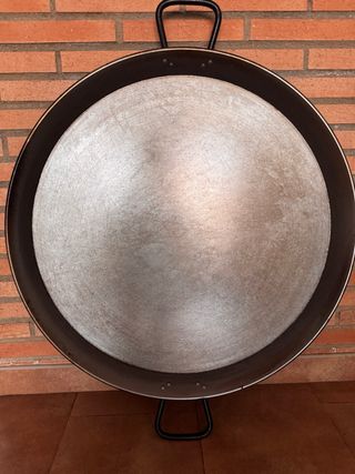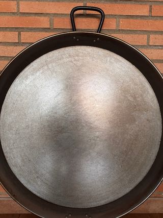 Paellera de gran tamaño, ideal para preparar paellas y otros arroces 70 cm de diámetro. - Superficie de cocción amplia. - Dos asas para facilitar el manejo. - Material metálico resistente.