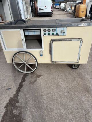 Se vende carro gastronómico profesional de uso ambulante, ideal para ferias, mercadillos y eventos. 🔧 IMPORTANTE: El carro NO funciona actualmente, se vende para revisar y reparar. Ideal para profesional de hostelería, técnico o alguien que quiera restaurarlo. 🔹 Características: • Dos cubetas superiores (freidora / baño maría) • Panel de mandos con interruptores y reguladores • Compartimentos aislados de almacenamiento • Estructura robusta industrial • Ruedas grandes para exterior y transporte 🔹 Usos habituales: • Churros • Patatas fritas • Buñuelos • Castañas • Comida caliente