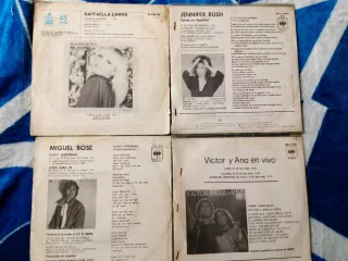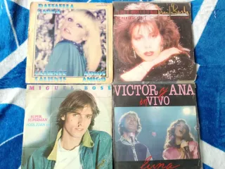 Lote de 4 discos LP de vinilo. - Todos juntos 14€ - Raffaella Carrá: Caliente, Caliente / Adios Amigo - Miguel Bosé: Super Superman / Vota Juan 26 - Victor y Ana: En Vivo / Luna