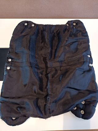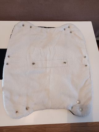 Funda para manos para el carrito de bebe, es una funda corrida, muy útil y caliente. Se puede meter una o varias manos. Amplia. Tiene arañazos del uso y roce con el carro, pero se puede usar perfectamente