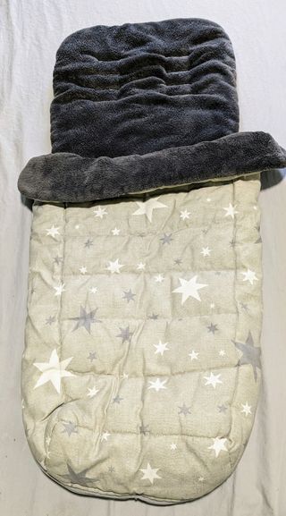 Saco de invierno para carro de paseo de la marca Tuc Tuc. Muy caliente y con muy poco uso. Tiene un protector de plástico en la zona de los pies para que no se manche.