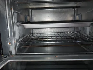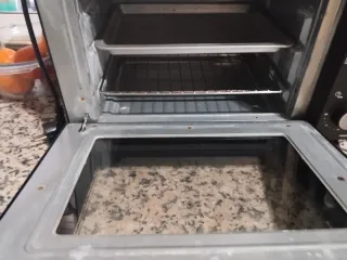 Horno tostador compacto, ideal para espacios reducidos. Su diseño es sencillo y funcional. - Tres perillas de control. - Puerta de cristal. - Rejilla interior.