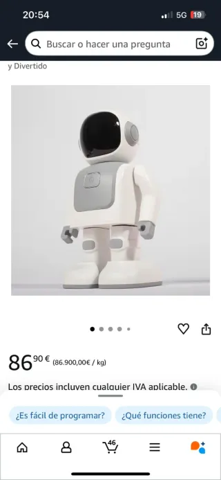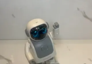 Robot inteligente de diseño moderno. Su precio en tienda 86€ - Color blanco y gris. - Ideal para niños, interactua ,juega , baila al son de la musica y es un altavoz bastante potente dispone de una app para cambiarle los ojos de color y mover tipo radio control una pasada