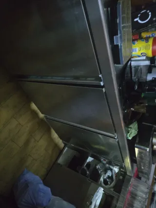 Nevera de acero inoxidable sin motor. Ideal para mantener alimentos frescos. - Construcción robusta en acero inoxidable. - Diseño funcional y fácil de limpiar.
