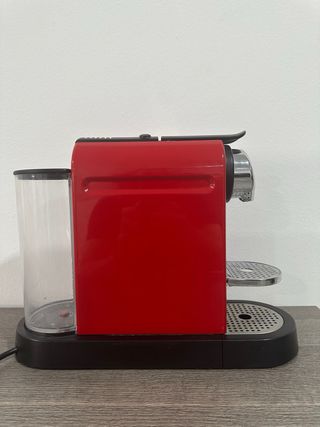 Cafetera Nespresso de color rojo. Perfecta para preparar tu café favorito. - Depósito de agua extraíble. - Bandeja recogegotas. - Diseño compacto.