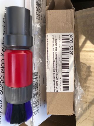Cepillo de limpieza para aspiradoras Dyson. - Compatible con modelos V7, V8, V10, V11, V12 y V15. - Diseño de cerdas suaves para evitar arañazos. - Cerdas autolimpiables. - Fabricado en China.
