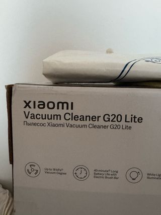 Aspirador Xiaomi G20 Lite en color blanco y naranja. Se vende con todos sus accesorios. - Cuerpo principal del aspirador. - Tubo de extensión. - Cepillo principal. - Accesorio para ranuras. - Filtro. - Depósito de polvo. - Soporte de pared.