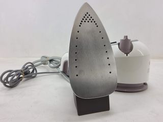 Centro de planchado Rowenta con base. - Plancha de vapor. - Base de carga. - Cable enrollable. SE CAYO AL SUELO. CREO QUE TIENE FUGA INTERNA POR EL CALDERIN DEL AGUA. CUANDO CALIENTA SALTA. IDEAL PARA PIEZAS.