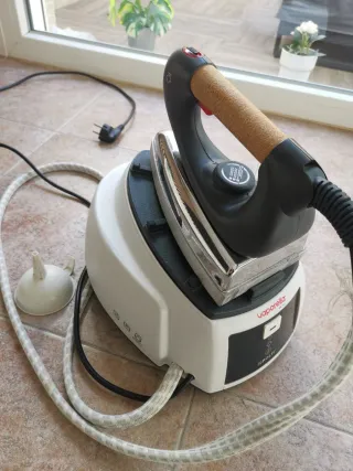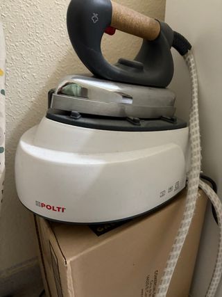 Centro de planchado Polti Vaporella con poco uso. - Diseño moderno y funcional. - Asa ergonómica con acabado en corcho. - Base de plancha de acero inoxidable.