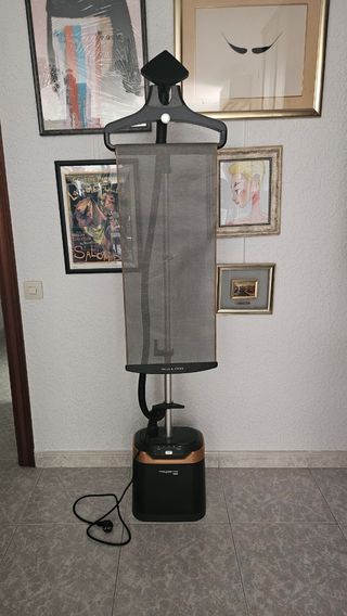 ¡Prácticamente a estrenar! Solo se ha usado en una ocasión para planchar un lote de camisas para una tienda. La barra del soporte de la plancha (señalizada en la primera foto) está rota pero se puede seguir usando de igual modo colocando el soporte directamente encima de la tabla u otra superficie. Precio original 330€ 🛍️ Entrega en mano en Carrer de les Moles. Barrio Gótico, Barcelona (metro Urquinaona) ✔️ Se acepta pago en efectivo o Bizum.