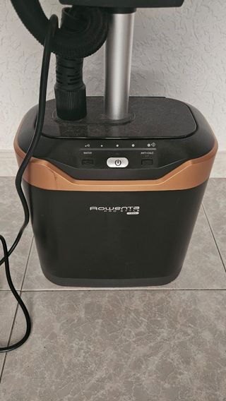 Plancha vertical Rowenta para alisar ropa. - Color negro. - Incluye percha. - Manguera flexible.