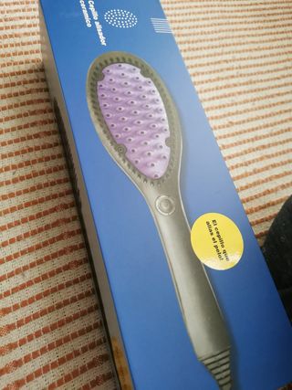 -Peine nuevo que solo abrí para comprobar que funciona correctamente, nunca se usó,es nuevo. -Precio @m@zon:19€ + envío -Alisa tu cabello en una sola pasada y también dale volumen y brillo para que puedas lucir tu pelo como nunca. Características: -Viene con funda -Consume 50W -Tiene cerdas cubiertas de cerámica térmica que pueden alcanzar temperaturas de hasta 230 grados sin dañar tu cabello. Estos no aplanan el cabello, sino que lo alisa mientras le da volumen y brillo. -Pantalla LCD, botón on-off, botones de control de temperatura, cable giratorio (1,80 m) -Respondo dudas!