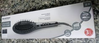 Cepillo alisador de pelo. SilverCrest. Cable basculante. 50 W. Rango de temperatura entre 100-180 grados, tu los regulas. Pantalla led con indicación de temperatura. Cepillo con revestimiento de cerámica. Cepillo y plancha. A penas sin uso. Se vende con la caja original.