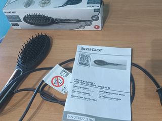 Cepillo alisador marca Silvercrest .Alcanza 180°.Púas con revestimiento cerámico.Apagado automático en 45 minutos.En perfecto estado.Sin apenas uso.Incluye caja.