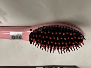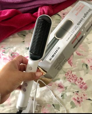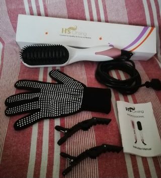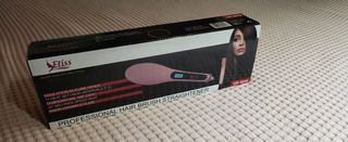Luxury ceramic hair straightening brush: cepillo alisador cerámico de alta calidad. Seca y alisa el cabello como un secador, con la facilidad de un cepillo. Distribución de calor y recuperación rápida de temperatura, sella cutículas reduciendo puntas abiertas y nudos. Da al cabello un aspecto natural, saludable y sedoso. A estrenar, en su caja original -- la caja tiene una mancha de agua en un lado. Incluye instrucciones de uso.