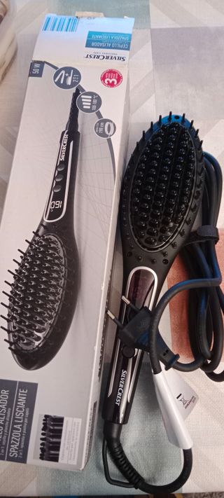 Cepillo y plancha alisadora eléctrica, dos en uno, marca Silvercrest. Revestimiento de cerámica. 50W. Cable de 190cm. 100-180°C (las medidas son de la caja)
