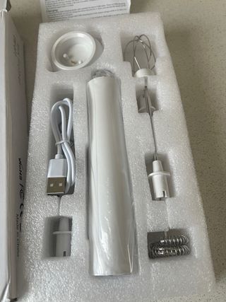Me gustaría vender mi espumador de leche eléctrico inalámbrico. Está nuevo y viene con dos batidores. - Es inalámbrico y recargable por USB. - Incluye dos batidores diferentes. - Perfecto para hacer espuma de leche para café o capuchinos.
