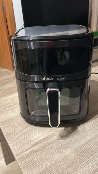 Freidora de aire Ufesa Raven en color negro. - Diseño moderno y compacto. - Asa ergonómica para facilitar su uso. - Ventana transparente para visualizar la cocción. Esta practicamente nueva, la he usado 2 veces.