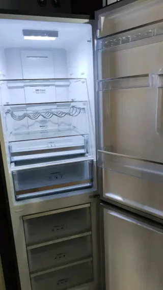 Nevera en buen estado con tecnología NO Frost. - Diseño moderno y espacioso. - Cajones para frutas y verduras. - Estantes de cristal. - Puerta con compartimentos. Con apenas uso