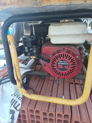 Grupo electrógeno de la marca AYERBE, modelo 3800. Ideal para generar electricidad. - Diseño robusto con estructura metálica. - Ruedas para facilitar el transporte. - Depósito de combustible de gran capacidad.