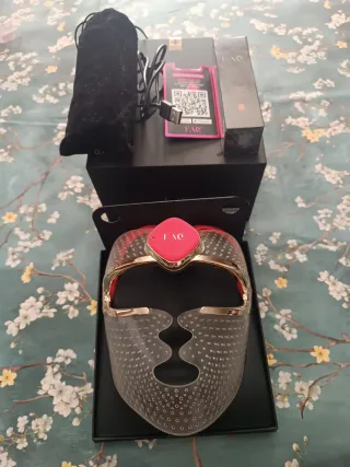 Máscara LED de la marca FAQ en perfectas condiciones. Incluye todos sus accesorios originales. - Diseño ergonómico. - Acabado en dorado y rosa. - Incluye bolsa de transporte.