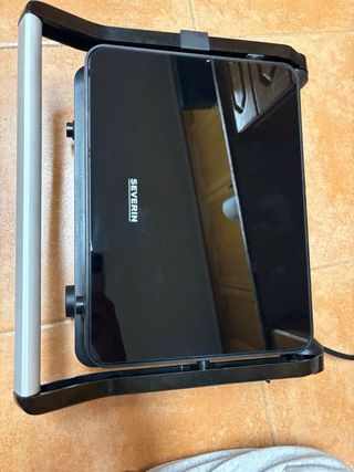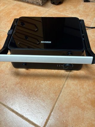 Grill de contacto SEVERIN en color negro. Ideal para preparar tus comidas de forma rápida y sencilla. - Superficie de cocción antiadherente. - Control de temperatura ajustable. - Indicador luminoso de encendido y listo.
