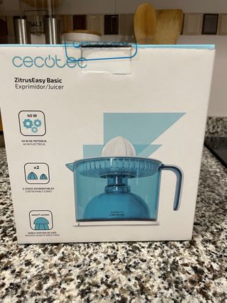 Exprimidor eléctrico Cecotec ZitrusEasy Basic. - 40 W de potencia. - 2 conos desmontables. - Doble sentido de giro.