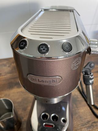 Cafetera De'Longhi en color marrón metalizado. Diseño elegante y compacto. - Acabado brillante. - Botones de control. - Vaporizador.