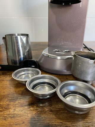 Cafetera Nespresso Vertuo Next en color beige y negro. Diseñada para preparar café de forma rápida y sencilla. - Incluye el soporte para cápsulas. - Diseño moderno y compacto. Está en perfecto estado, se ha usado en ocasiones muy contadas.