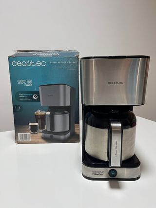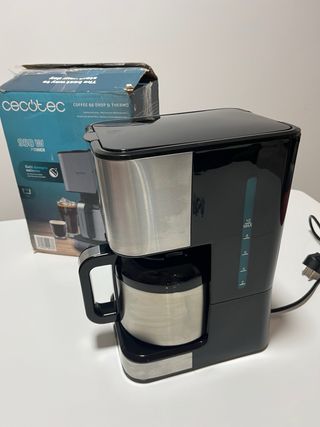 Cafetera de goteo Cecotec con jarra térmica que mantiene el café caliente durante horas. Está nueva, fue un regalo que no he utilizado. - Modelo: Coffee 66 Drop & Thermo. - Potencia: 950 W. - Capacidad: 1.2 L, hasta 10 tazas de café. - Acabado en acero inoxidable. Con libro de instrucciones y caja original.