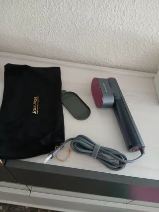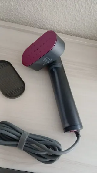 Plancha de vapor portátil de la marca Jack & Rose, ideal para llevar de viaje. Incluye bolsa de almacenamiento. - Diseño compacto y ligero. - Color gris y detalles en rosa. - Incluye accesorio adicional. - Solo envio por wallapop.