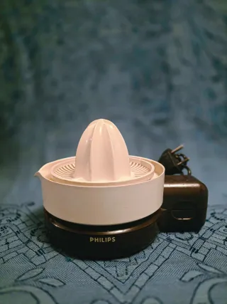 Exprimidor eléctrico de la marca Philips. - Diseño compacto y funcional. - Color blanco y negro.