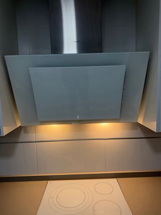 Campana extractora decorativa. - Diseño moderno en color blanco. - Acabado en cristal y acero inoxidable. - Tamaño: 90 cm ancho. - Marca: Cata. - Modelo: THALASSA 900XGWH /D - Color: Blanco. - Extracción máxima: 825 m3/h. - 4 niveles extracción + 1 modo turbo. - Clase energética: A+++. Funciona perfectamente, excepto que puntualmente las velocidades se cambian si hay cierta humedad en cocina (cambiar/reparar módulo de velocidades probablemente). *** NO SE HACE ENVÍOS (SOLO VENTA EN PERSONA) ***