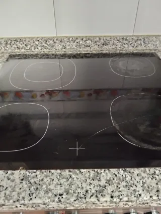 Vitrocerámica de la marca Balay. - Panel de control táctil. - Indicador de calor residual. - Bloqueo de seguridad para niños. - Necesita un lavado, pero funciona perfectamente. - Medidas: 59 cm ancho 52,5 cm alto