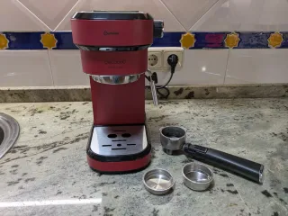 Cafetera de goteo Cecotec Cafelizzia en color rojo. - Diseño moderno y compacto. - Depósito de agua extraíble. - Bandeja recogegotas. - Vaporizador para espumar leche. Funciona correctamente