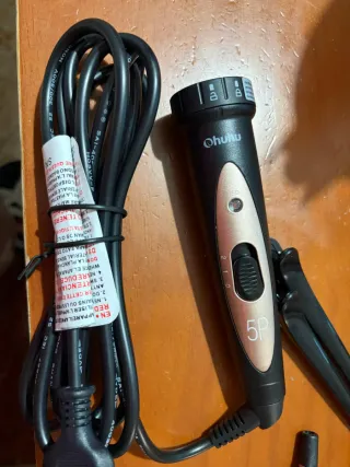 Plancha de pelo de la marca Ohuhu, modelo 5P. Cuenta con un diseño ergonómico y un cable de alimentación. - Mango con acabado en color oro rosa. - Selector de temperatura con tres posiciones (0, 1, 2). - Indicador LED. - Cable de alimentación de 300/300V.