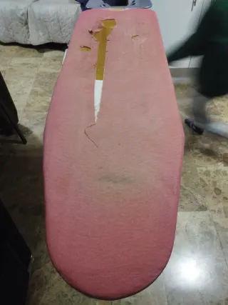 Tabla de planchar con funda de tela. - Funda de tela de color rosa. - Estructura metálica. - Está bastante estropeado pero se arregla con una funda