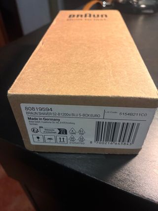 Afeitadora eléctrica Braun modelo 52-B1200si., utilizada una sola vez , aporto factura de diciembre 25 cuyo valor de compra fue de 80€ - Color: Azul. - Fabricada en Alemania. - Código de lote: 5154B211C0.