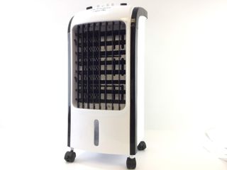 Climatizador evaporativo Digiline Airc85, con función de ventilador y humidificador. Práctico para mover con ruedas. - Diseño moderno en blanco y negro. - Panel de control superior. - Indicador de nivel de agua. Está nuevo. Se ha usado un par de veces.