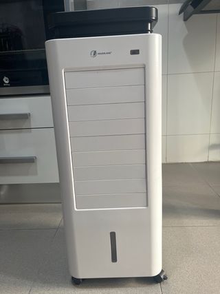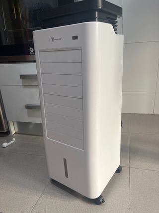 Solo se ha usado el verano pasado algunos días. Lo vendo porque instalé aire acondicionado en casa y no lo voy a usar. No conservo la caja original. Se incluyen enfriadores de hielo, ruedas y mando inalámbrico. Más información: 4 en 1: - Ventilador - Climatizador - Humidificador - Ionizador Potencia de 85 W Depósito de agua de 7L Oscilación de 90º Control mediante app y Alexa Temporizador de hasta 24 horas Modos: normal, naturaleza y noche 4 velocidades Se puede ver más información en Amazon poniendo en el buscador Klarstein Polar Tower Smart Climatizador Evaporativo