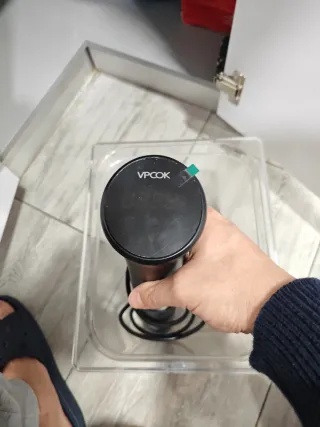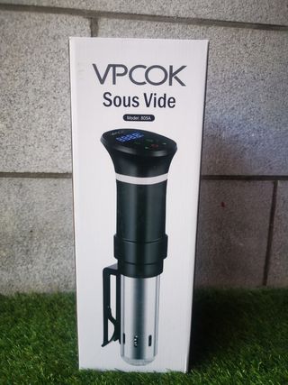 Sous Vide VPCOK 805A, prácticamente nuevo. Ideal para cocinar a baja temperatura. - Permite cocinar alimentos de forma precisa y uniforme. - Diseño elegante y compacto. - Fácil de usar. Cocina como un profesional con este termocirculador de inmersión Sous Vide VPCOK. Ideal para cocinar carnes, pescados y verduras al punto exacto. Pantalla digital con indicador LED de colores para mostrar estado de calentamiento, temperatura alcanzada y tiempo restante. Muy fácil de usar: solo necesitas una olla y bolsas de vacío.